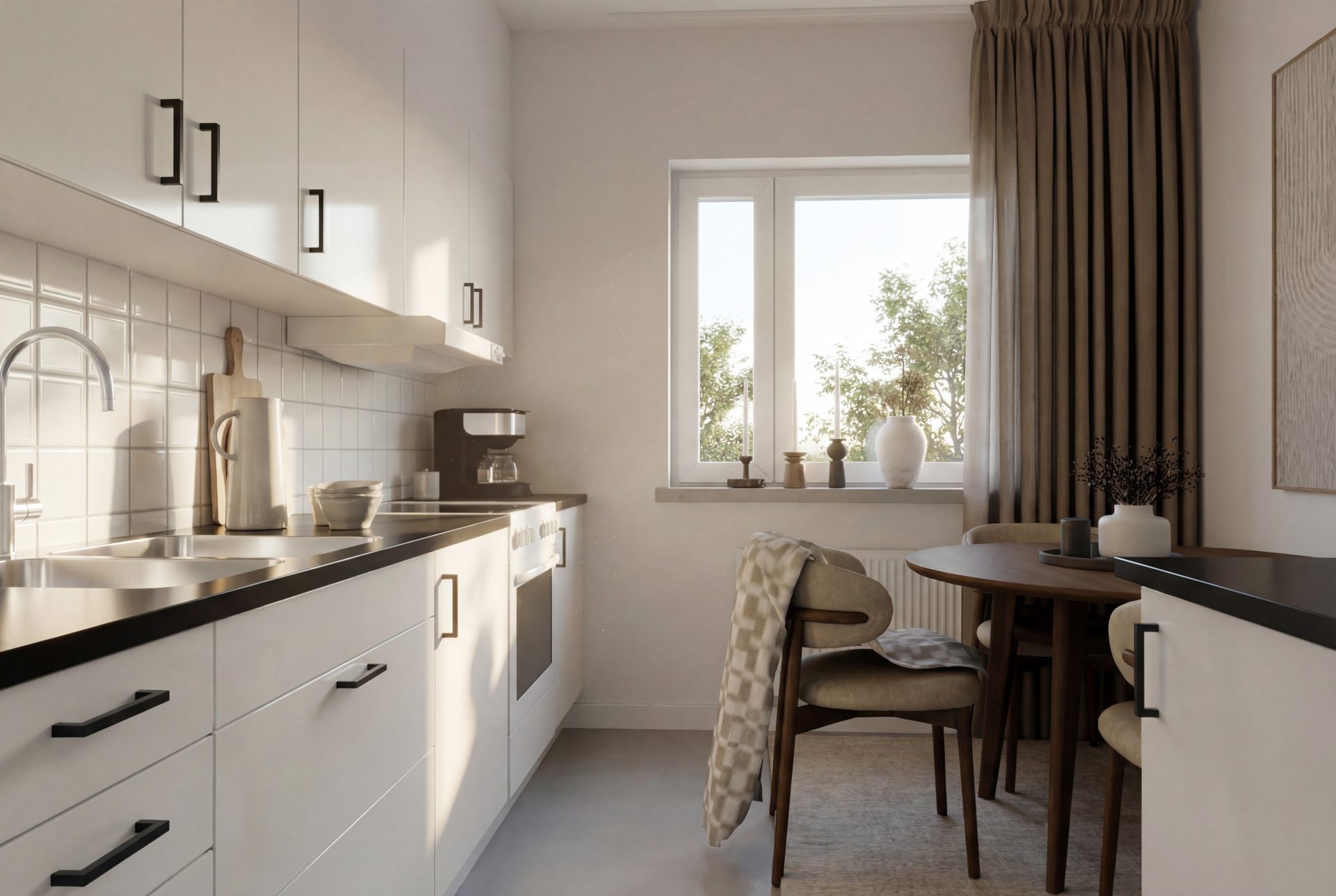 Köket är nytt med moderna vitvaror.