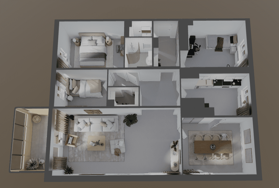 Flera sovrum och en inglasad balkong
